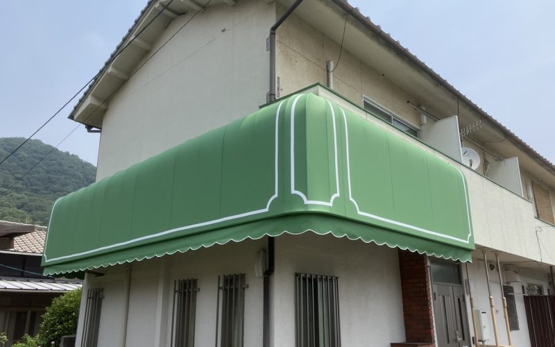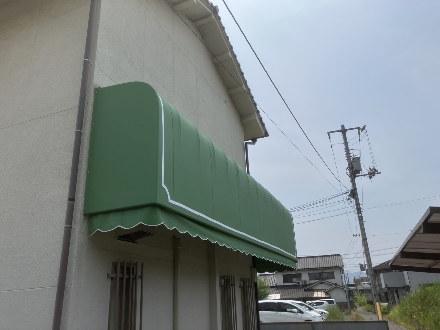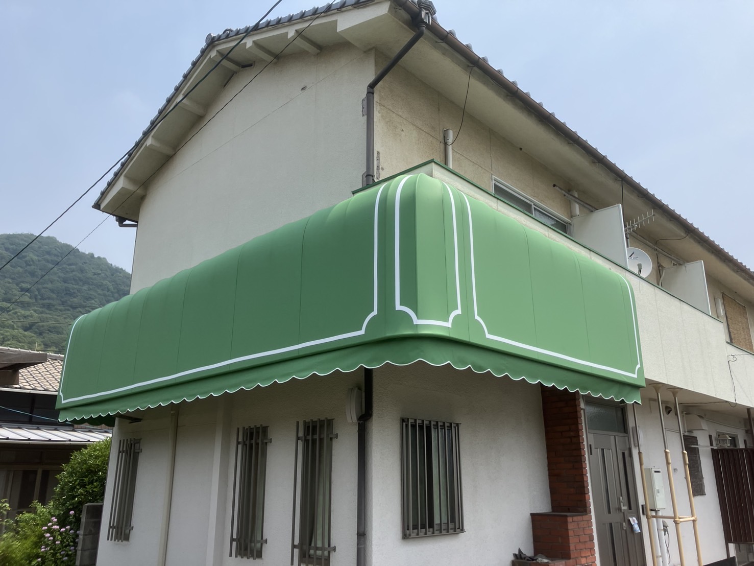 店舗装飾テント更新工事 寸法:W6300xW5600xD800xH1400 生地:クラレ 彩FC