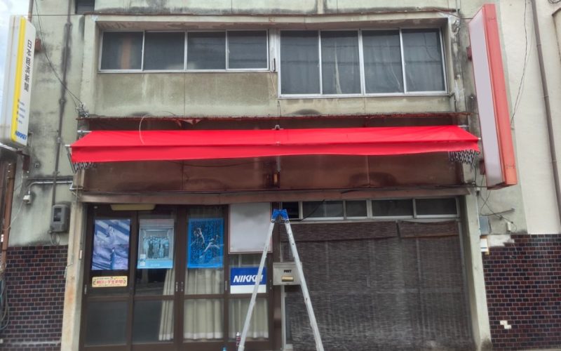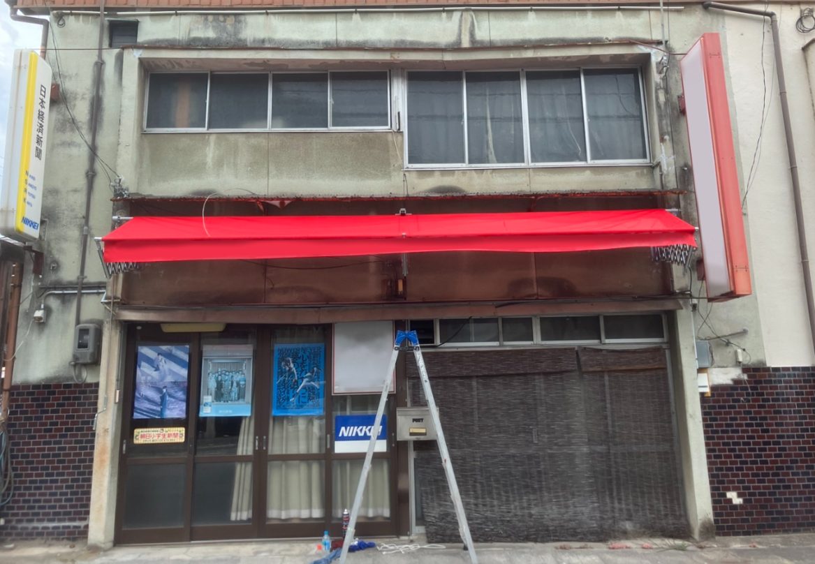 装飾巻上テント新規工事 寸法:W5430xD1060 生地:クラレ 彩