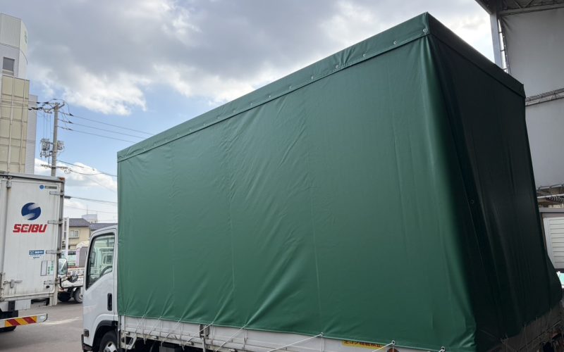 事例:トラック幌シート新規工事 寸法:W2150xL4480xH2045 生地:トラック用シート 5号