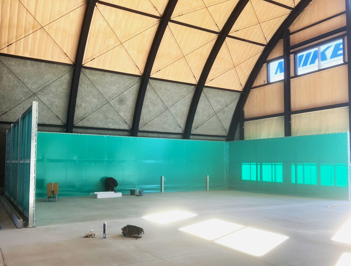 三方囲いの洗車場テントを鉄骨から新規で施工いたしました。