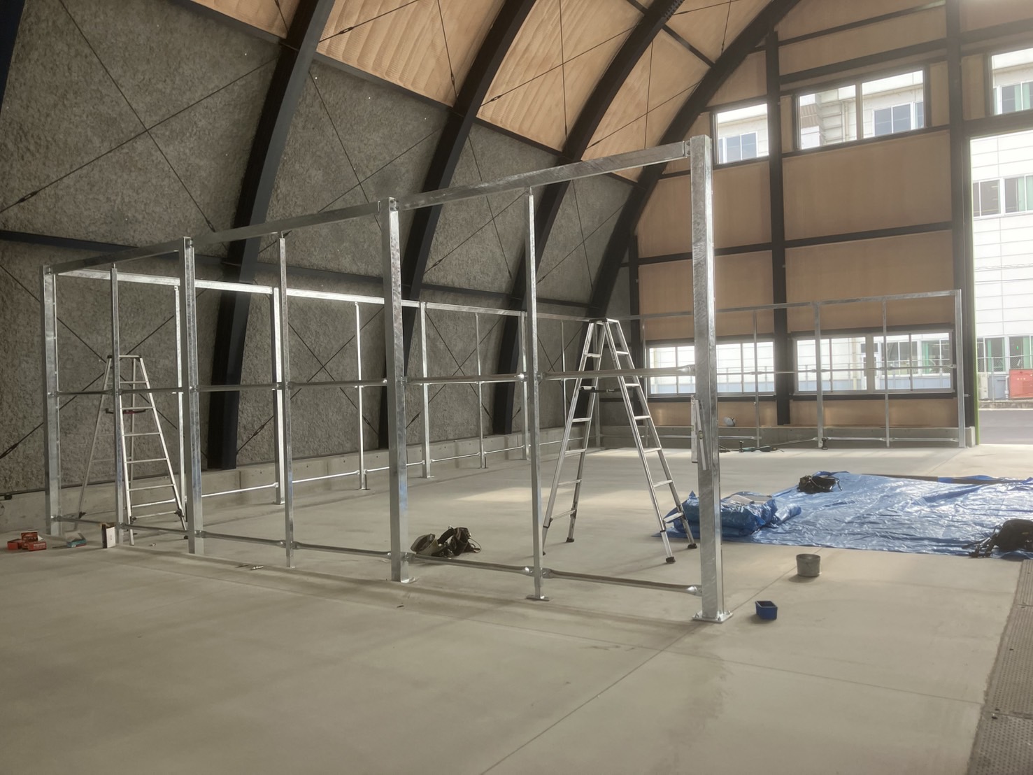 洗車場とのことでしたので鉄骨に関しては加工後、メッキ処理まで行っております。
