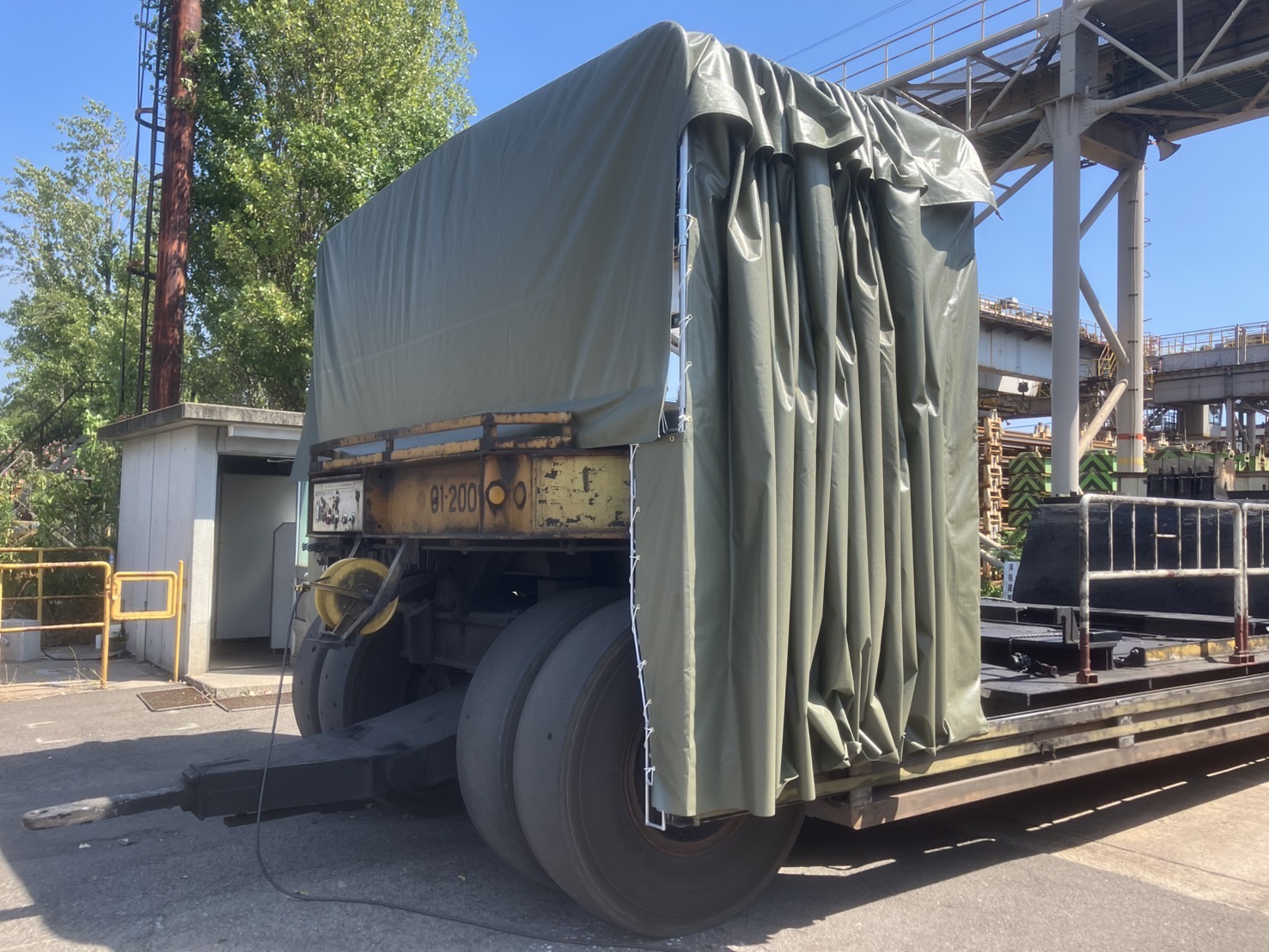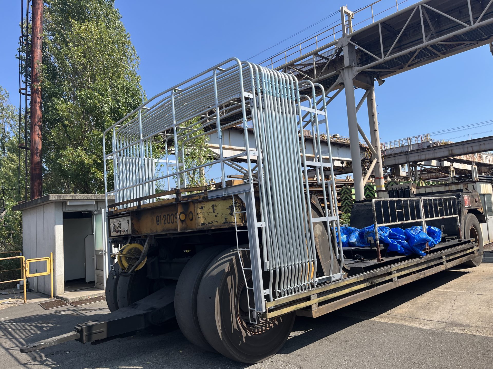 フレームを乗せたまま特殊車両が走行しますので強度等充分に検討して設計施工を行っております。